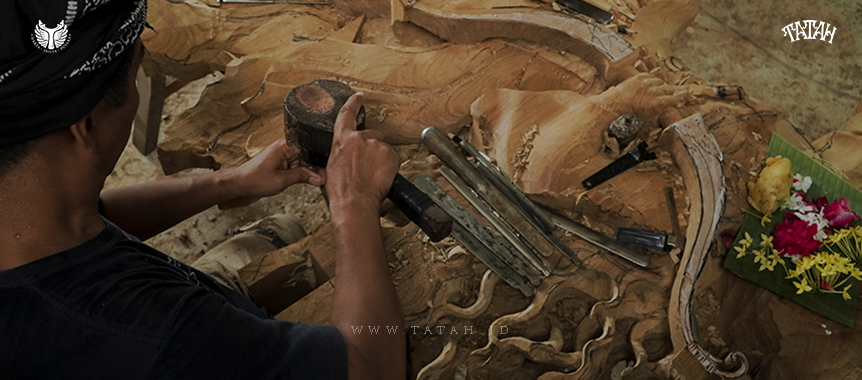 Proses kreatif kali ini telah memasuki tahap pemahatan, ketika desain yang semula berupa garis dan rancangan mulai berubah menjadi bentuk kasar di permukaan kayu. Sejak awal, pengerjaan dilakukan dengan penuh ketelitian, kesadaran, dan rasa hormat terhadap filosofi di balik setiap langkah.
